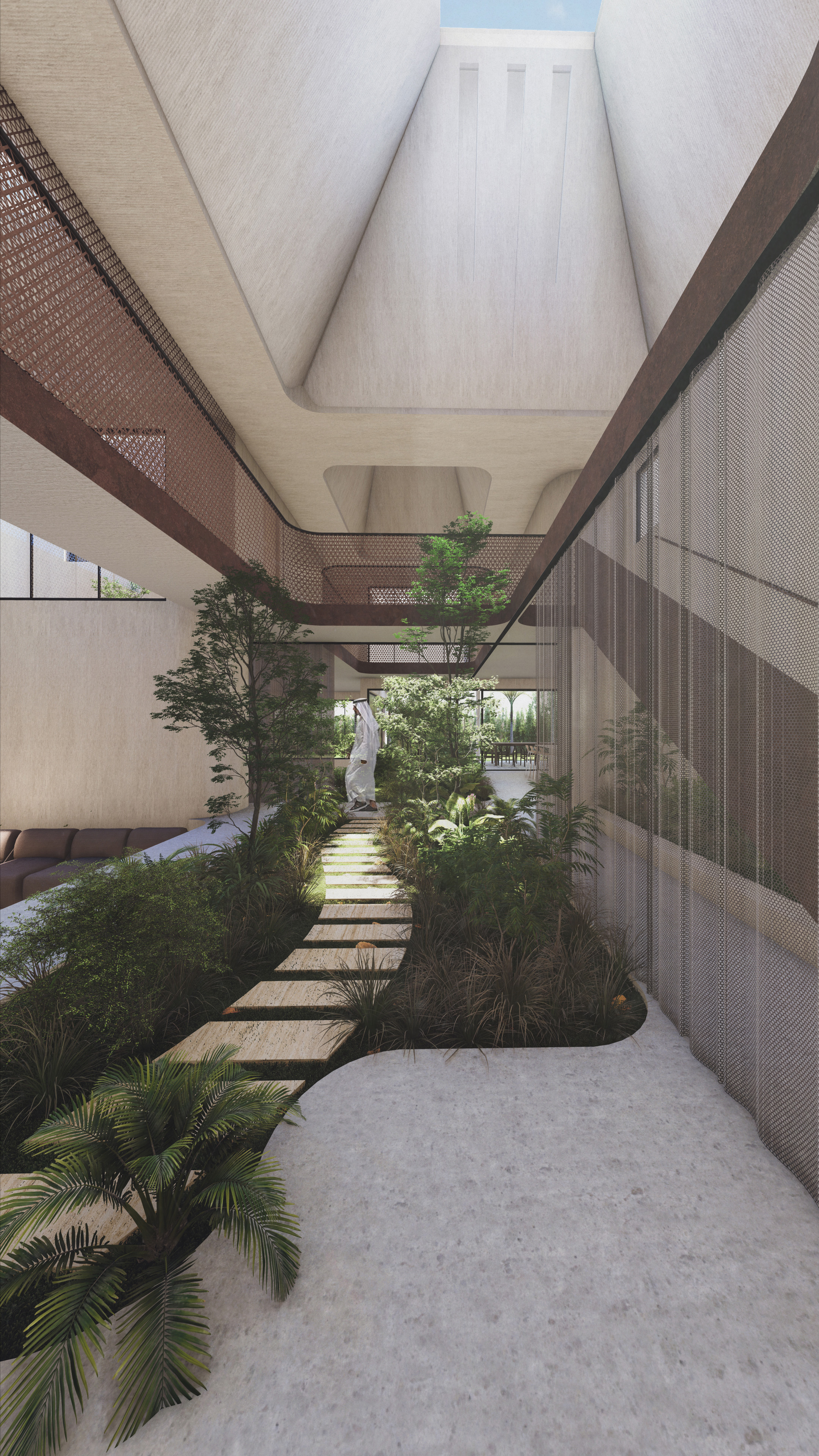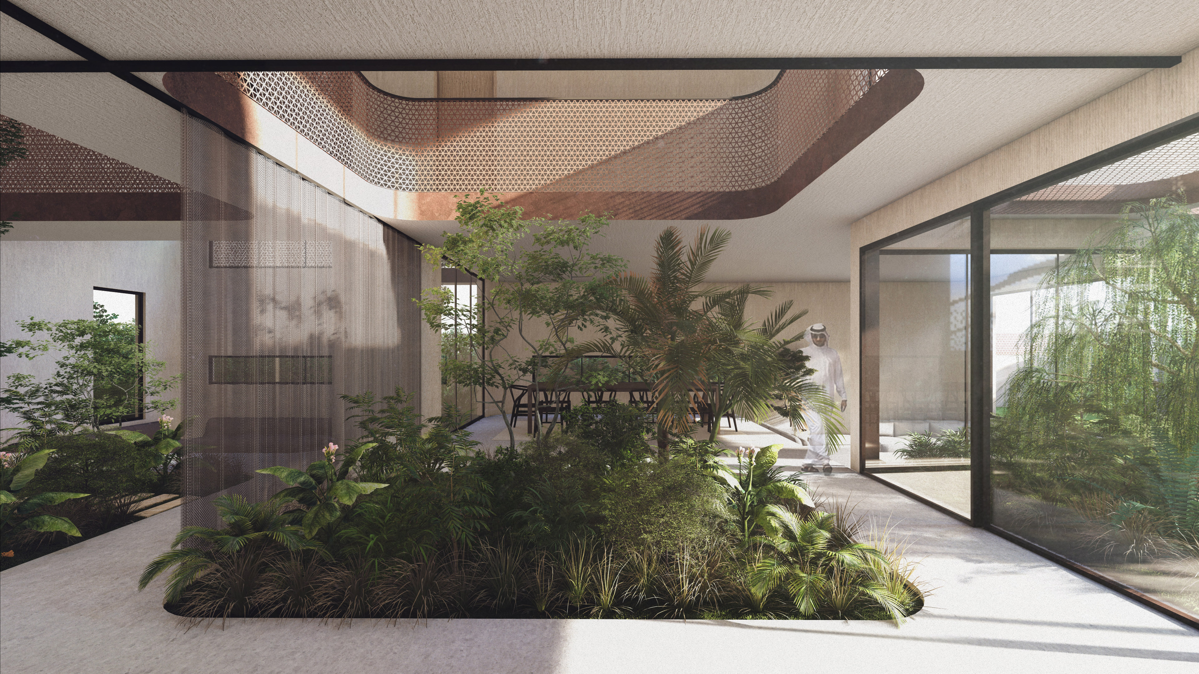 An internal courtyard oasis brings nature into the heart of the home and adds a further passive cooling element. Inthe RUH House, these elements combine to significantly lower indoor temperatures, vastly improving comfort and habitability for Dubai households.