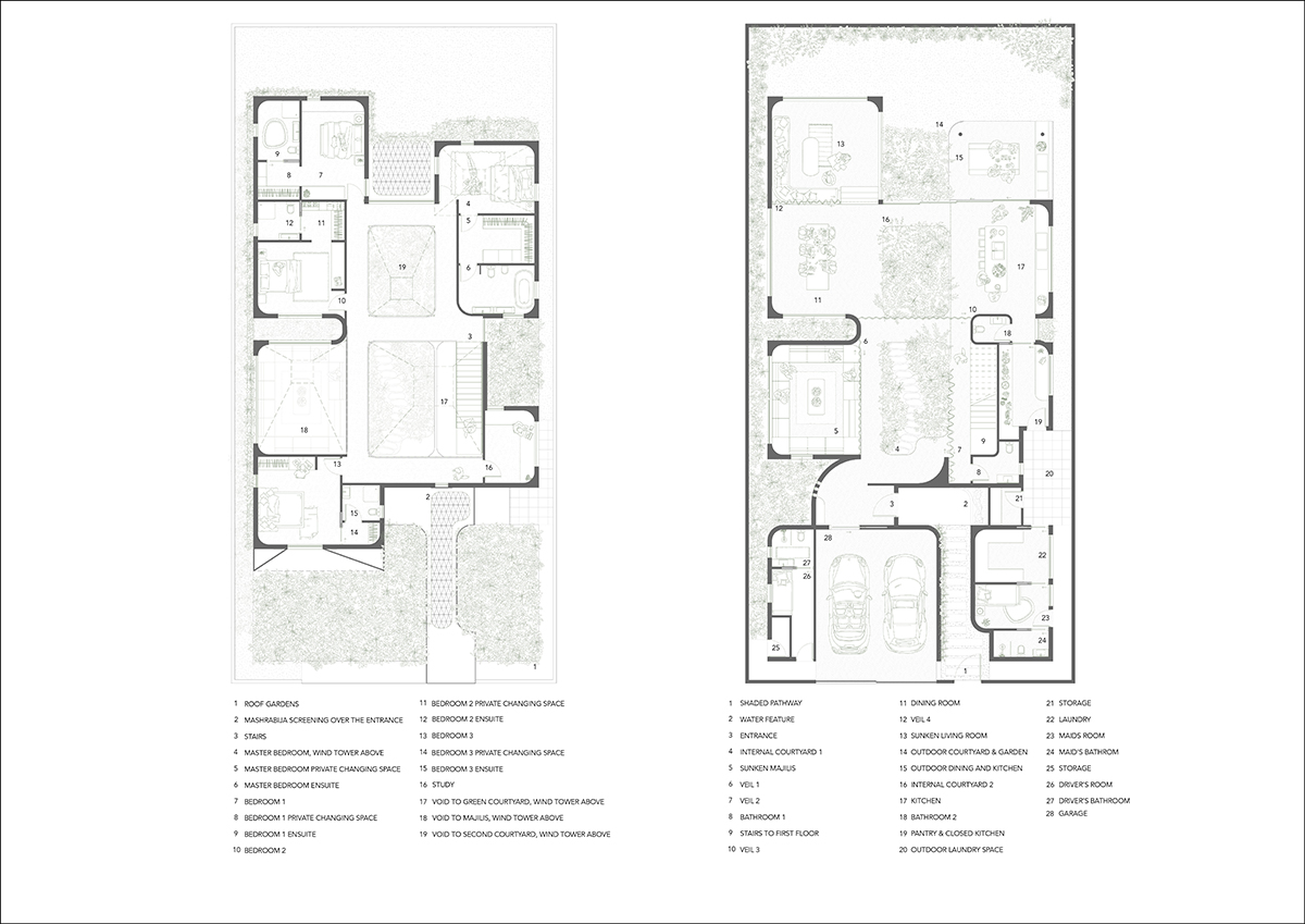 Air, privacy and nature are interwoven in the design via the concept of Veiling, affording privacy and modesty yet facilitating air flow and natural light penetration into the heart of the home.