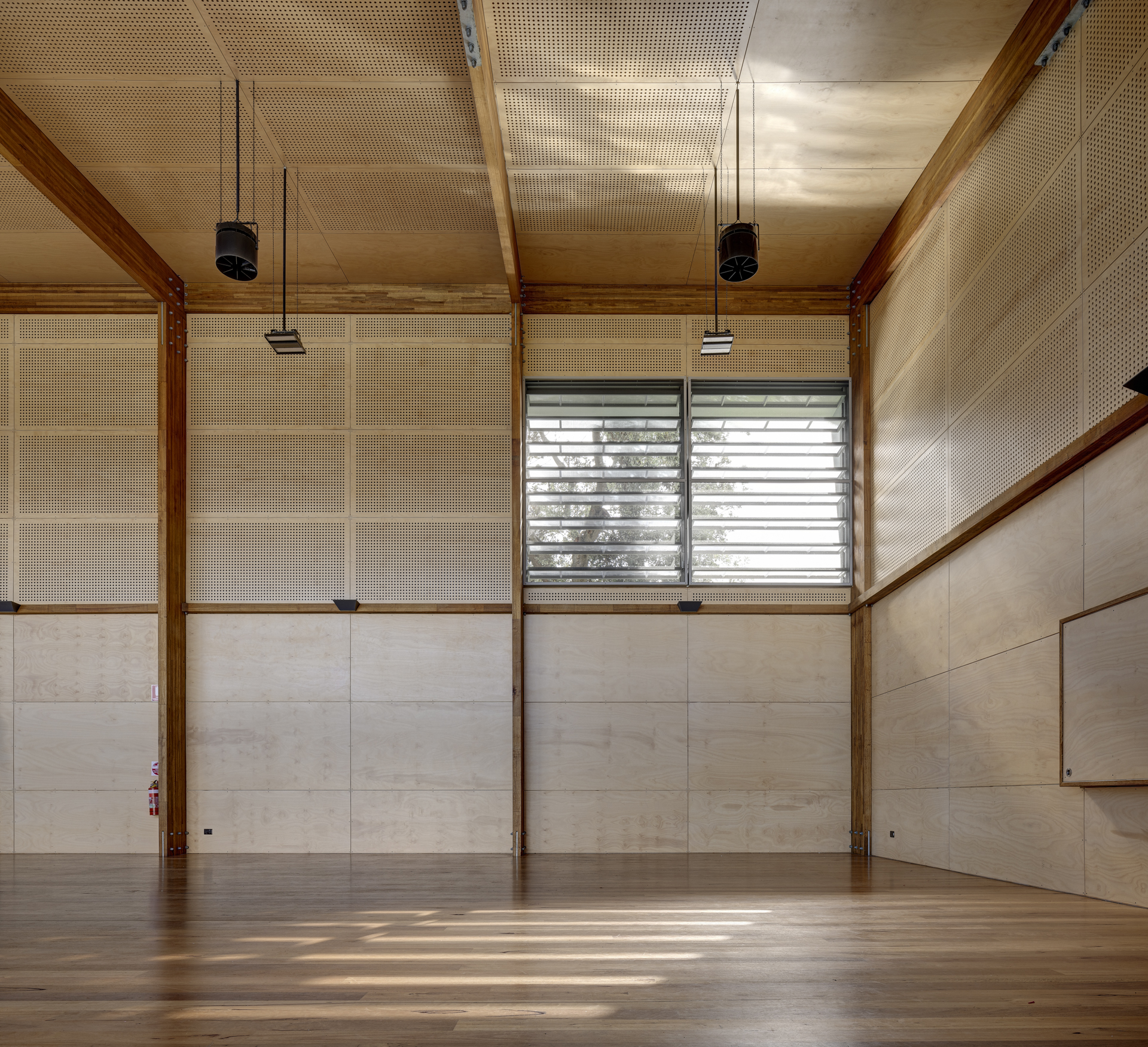 A key highlight of this project’s sustainability credentials is the retention of 15 out of 17 native trees, which support the native bird and animal life. In doing so, the users of the hall benefit from natural cooling, shading, and biophilic benefits of being surrounded by mature trees.