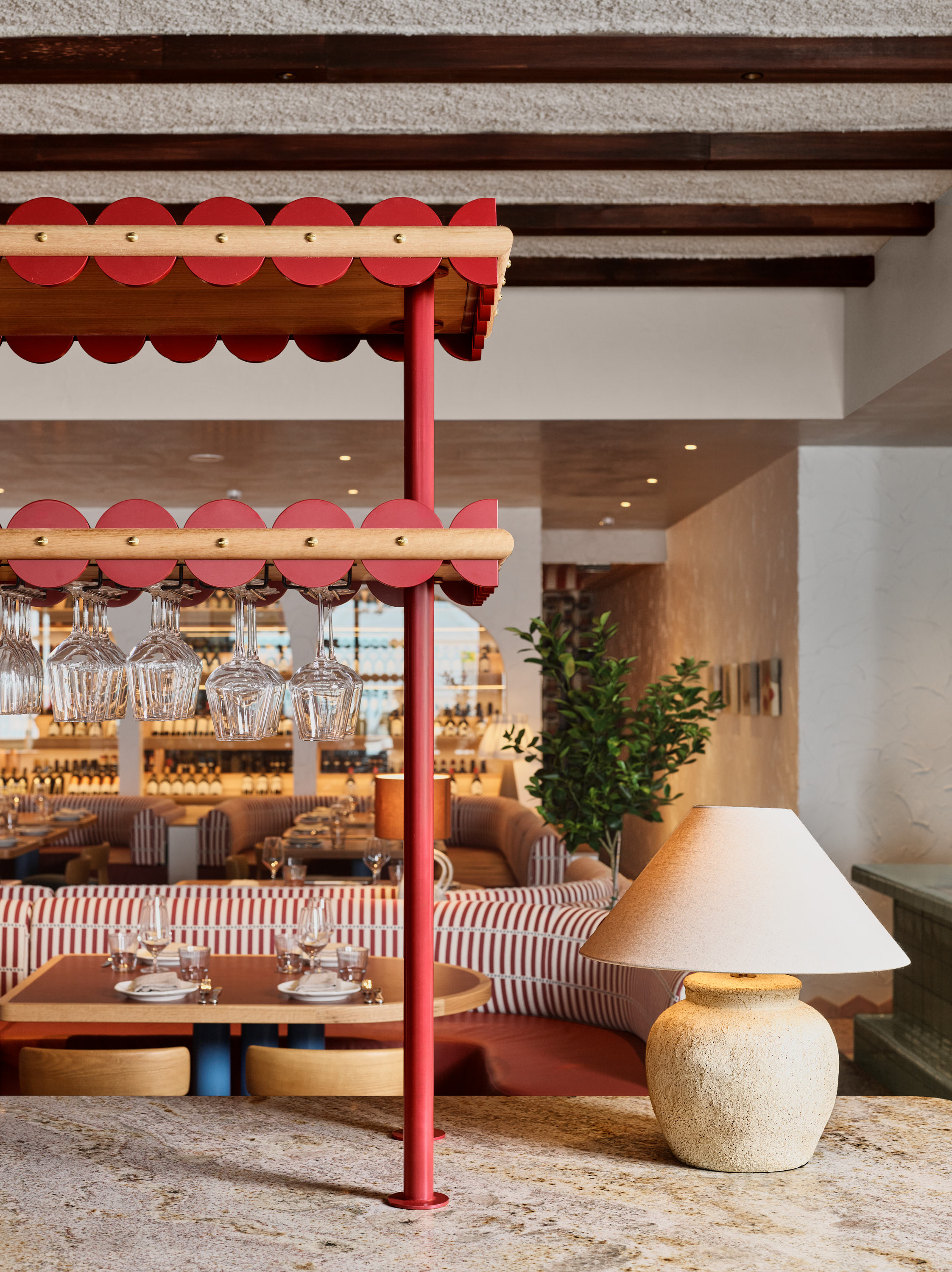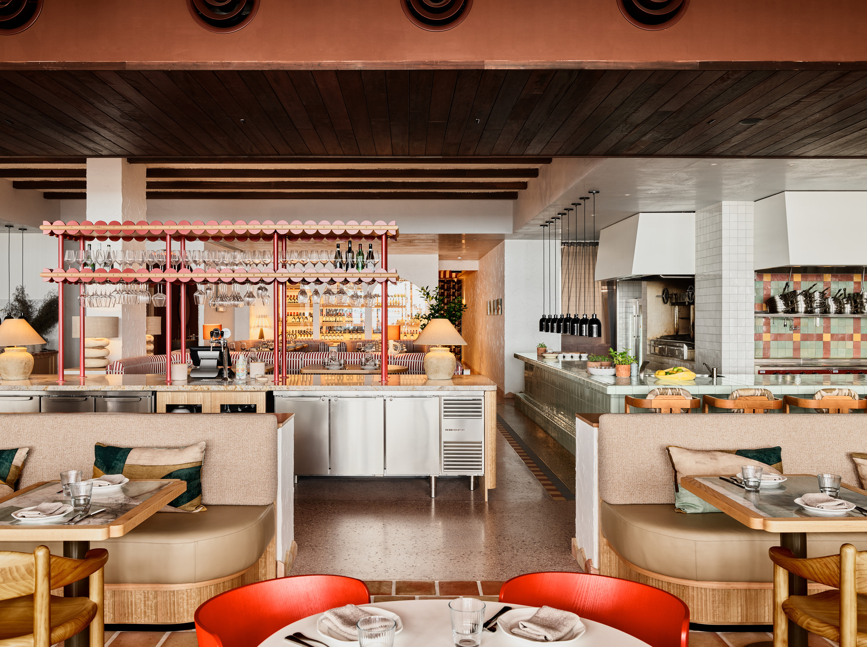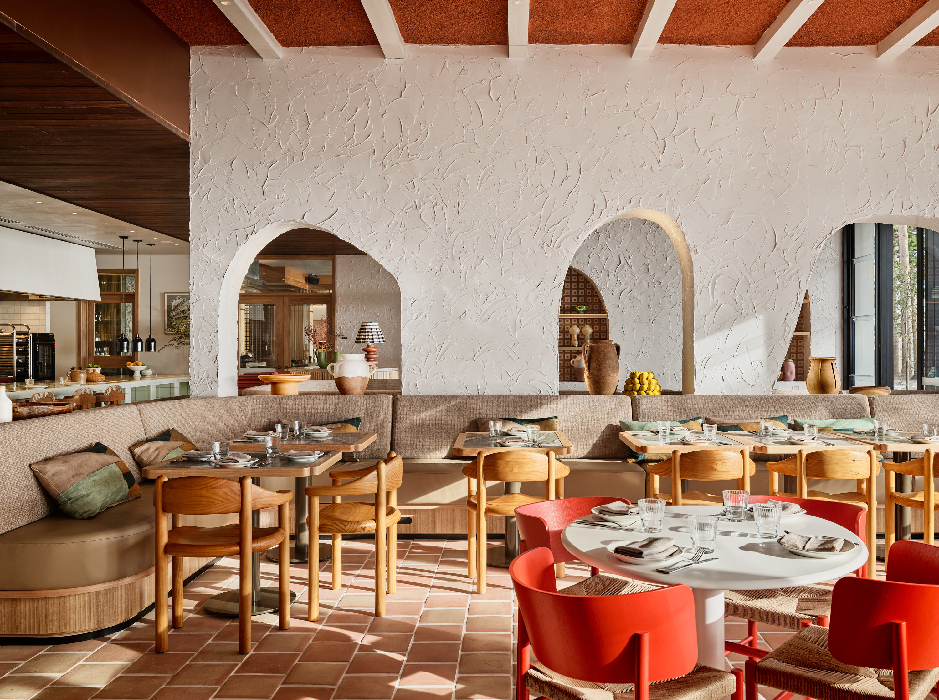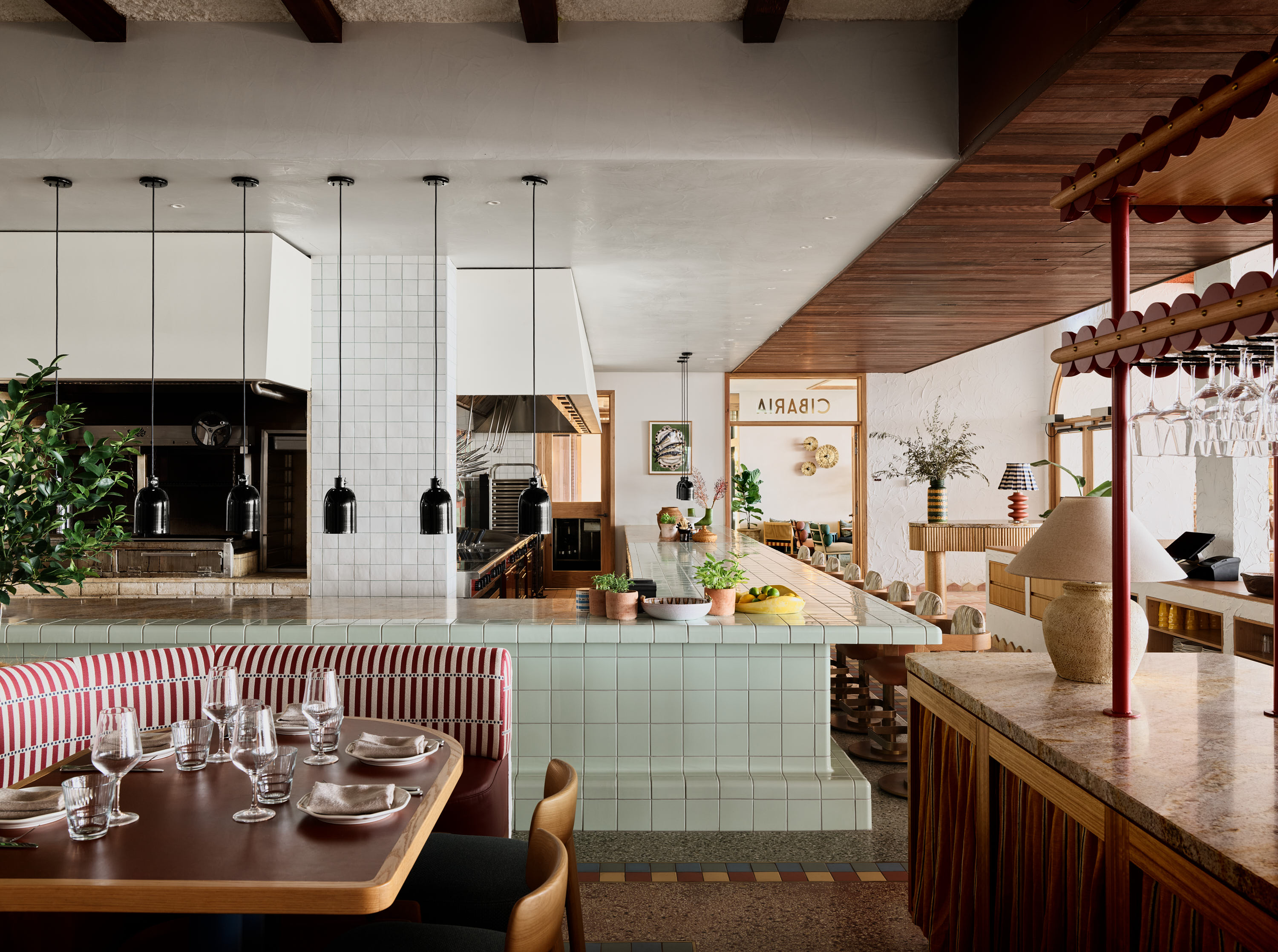 Highlighting the theatre of Italian cooking and feasting, Cibaria melds the communal sentiment of piazzas dotted with enotecas, trattorias and gelaterias with the rustic charisma of Italy’s southern coastal villages. The beachfront space mashes bold pigment pairings, incorporating patterned tiles with expressive stone and joinery, complementing its abundant Mediterranean menu.