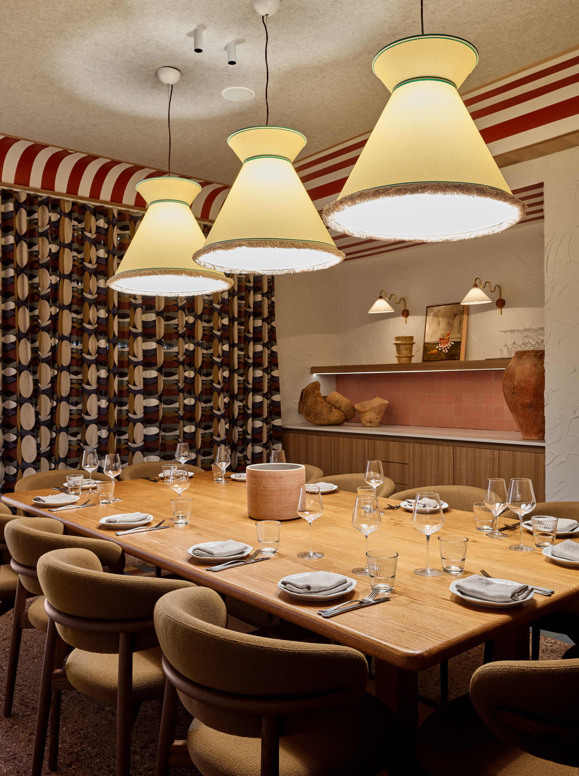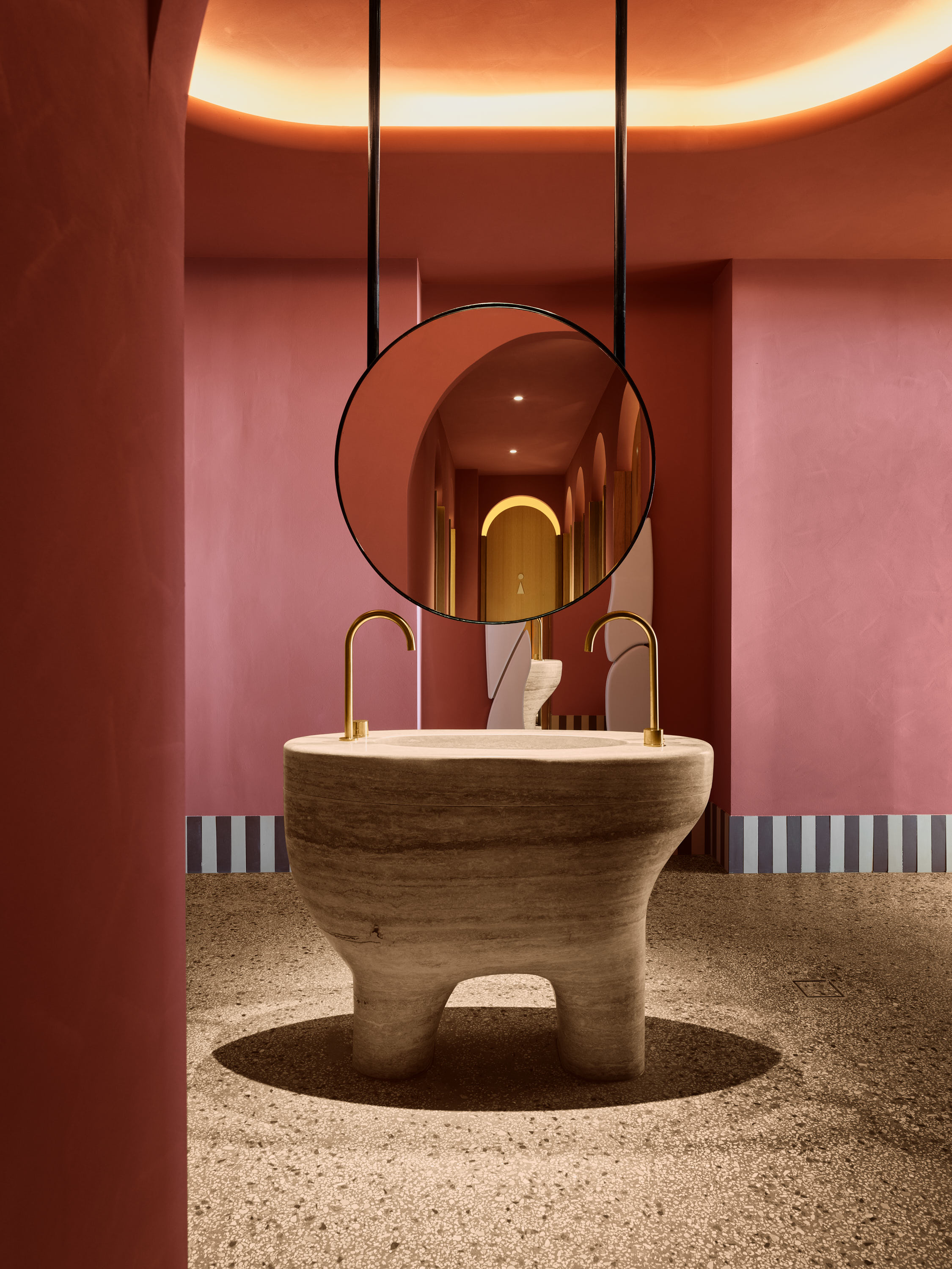 We dealt with two clients: the hotel and Cibaria’s key operators (a chef and his business partner/wife), which involved balancing the latter’s grandiose ideas with the former’s budget constraints. The operators’ brief was to seek inspiration from the Surrealist design of Sardinia’s Cala di Volpe hotel in Costa Smerelda, where organically shaped windows and portals carved into stucco walls flow beneath timber beams.